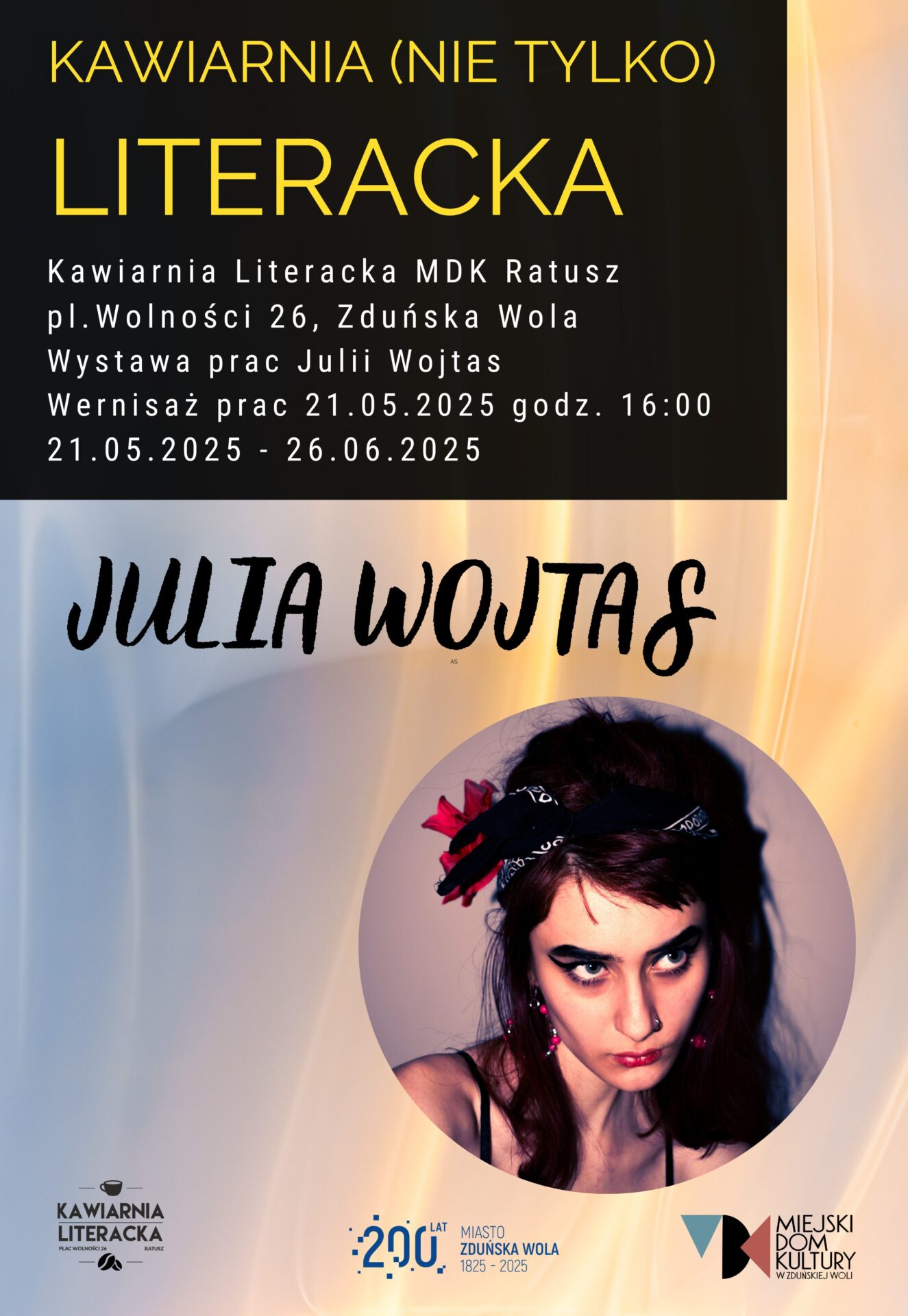 21 maja o godzinie 16:00 zapraszamy na wernisaż wystawy prac Julii Wojtas, uczennicy czwartej klasy Państwowego Liceum Sztuk Plastycznych im. Katarzyny Kobro w Zduńskiej Woli.