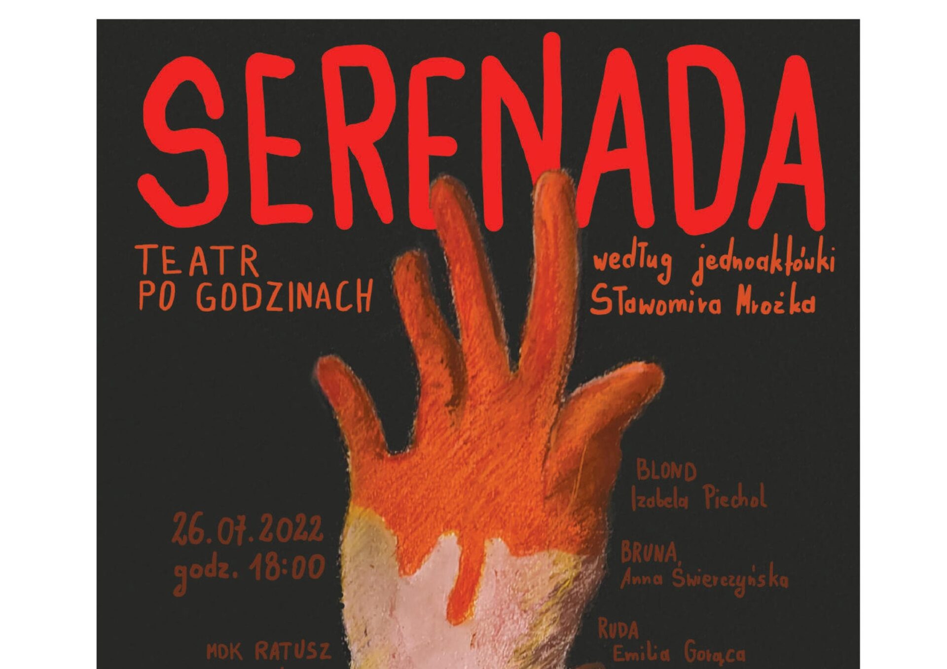 ,,Serenada” wg Sławomira Mrożka to pierwsza premiera Teatru Po Godzinach. Niebawem zaprosimy naszych widzów na drugą premierę, bądźcie cierpliwi.
