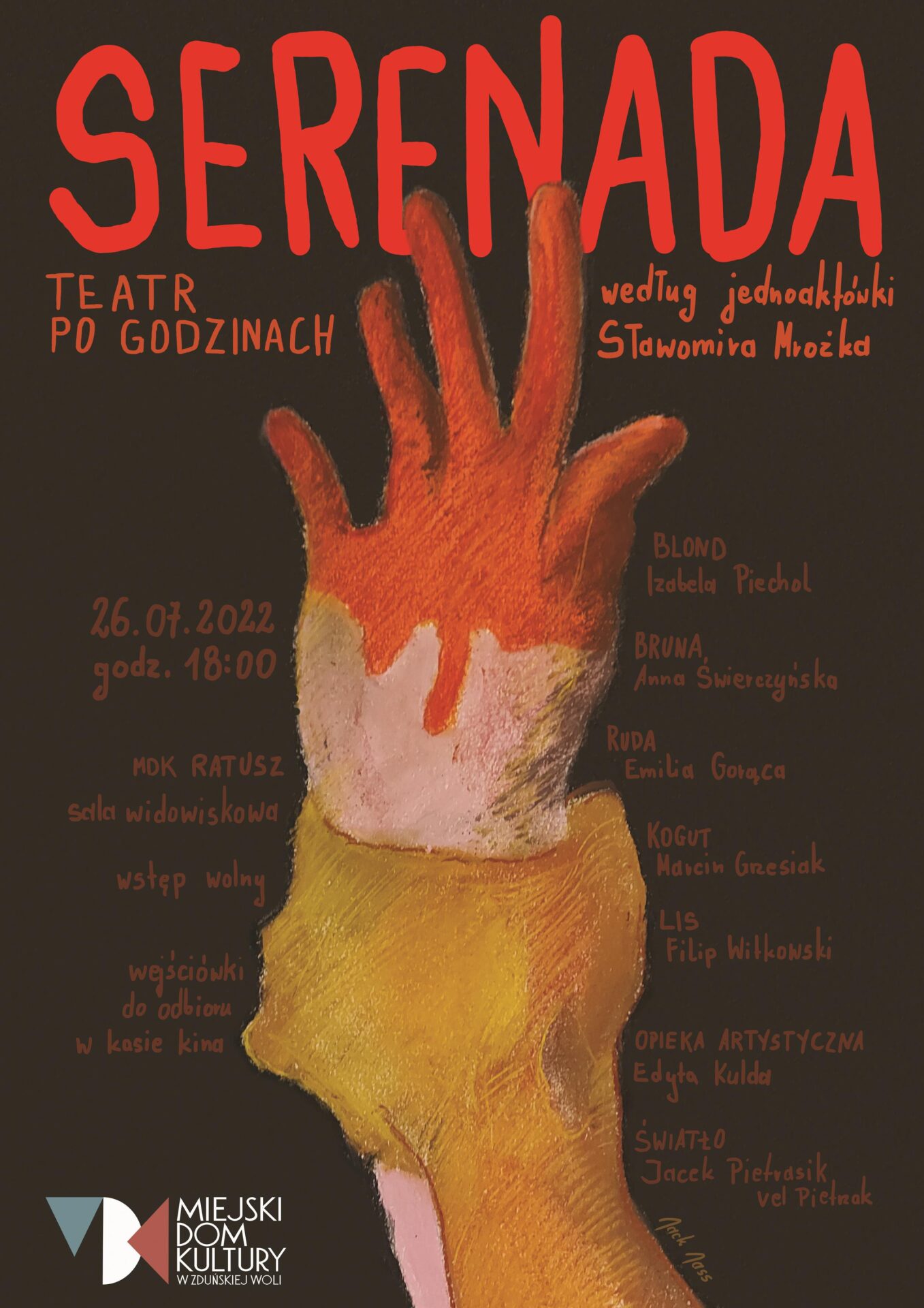 Spektakl odbędzie się 26 lipca o godzinie 18.00 w sali widowiskowej MDK Ratusz.