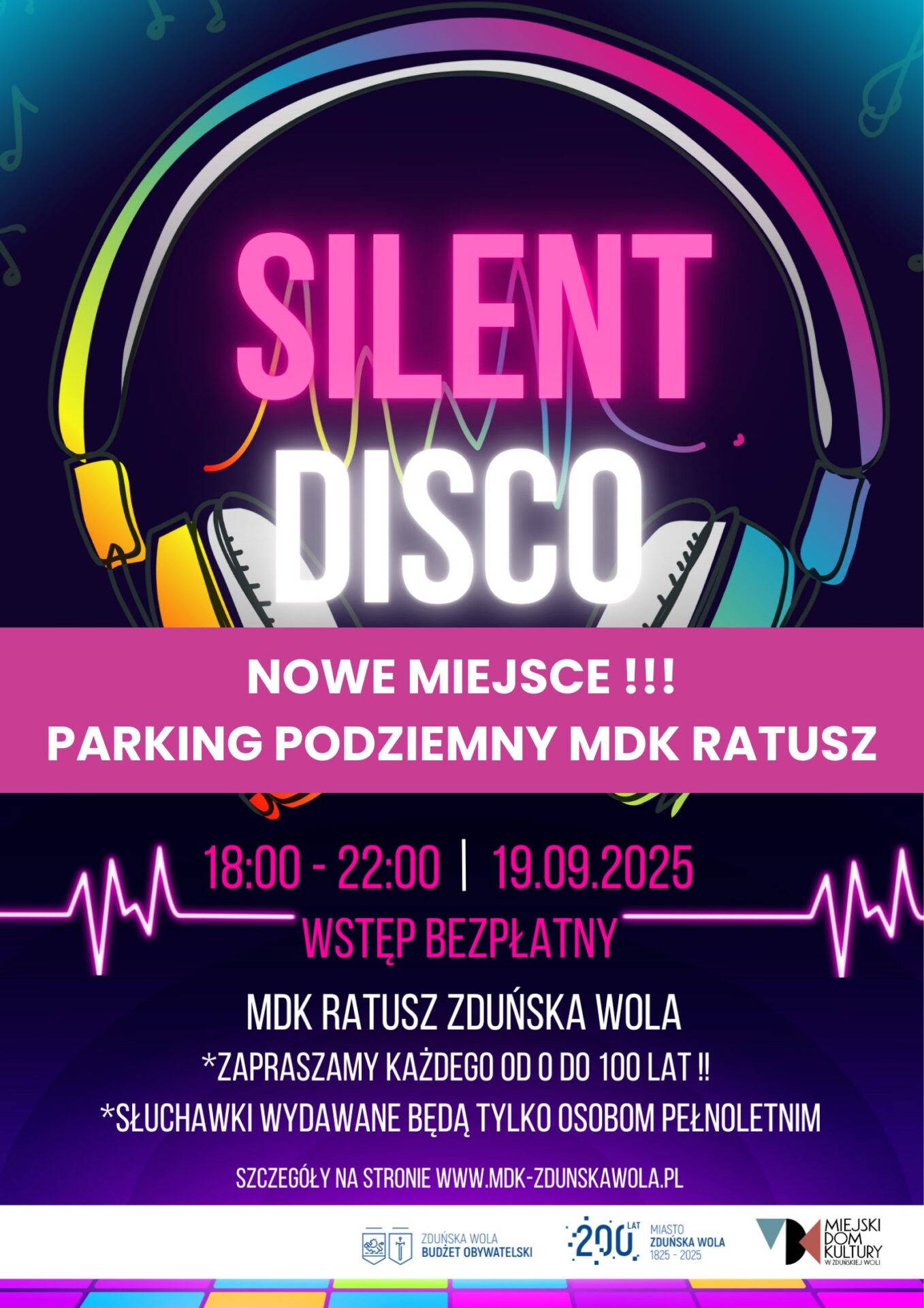 Silent Disco czyli inaczej ,,cicha dyskoteka”, to niezwykłe doświadczenie muzyczne, podczas którego tańczycie tylko Wy i Wasze bezprzewodowe słuchawki ponieważ muzyka jest odtwarzana tylko przez nie. To wydarzenie gdzie każdy uczestnik cieszy się wybraną muzyką w swoim własnym rytmie i tempie, jednocześnie spędzając czas w towarzystwie.