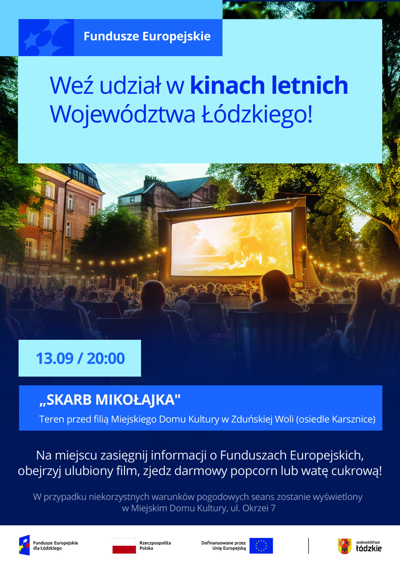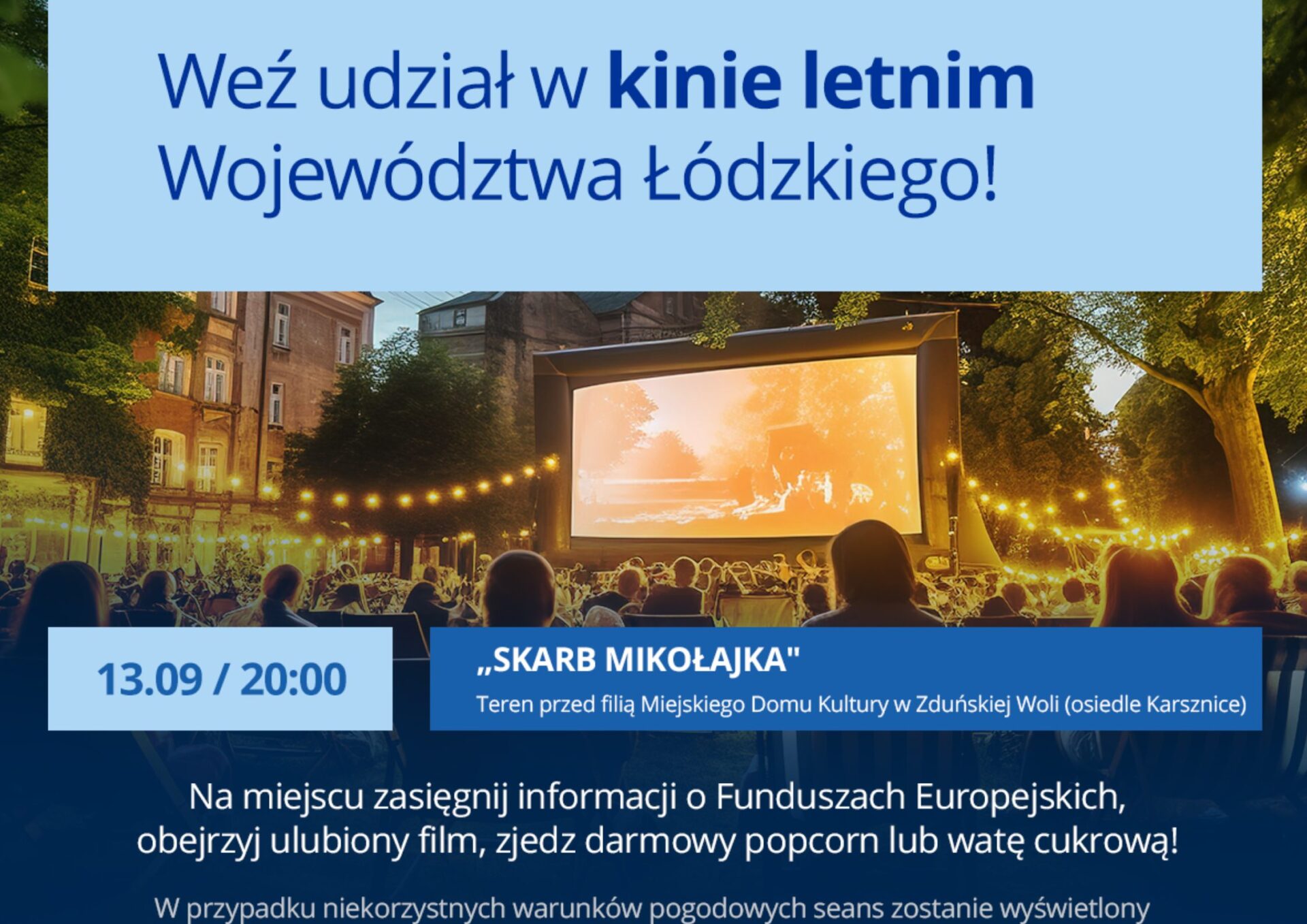 Podczas plenerowych pokazów możesz nie tylko obejrzeć ulubiony film, zjeść darmowy popcorn lub watę cukrową. Dowiesz się również czegoś więcej o Funduszach Europejskich.