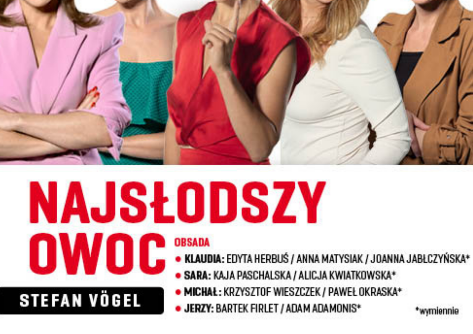 Zapraszamy na spektakl teatralny ,,Najsłodszy owoc”, oparty na austriackiej sztuce Stefana Vogla. Spektakl opowiada o namiętnościach, ukrytych marzeniach, o tym, czego pragniemy, a boimy się po to sięgnąć. Jest pełen zaskakujących zakrętów akcji i przezabawnych perypetii, z fantastycznym tekstem, doskonałą obsadą, świetnie wyreżyserowany i zrealizowany.