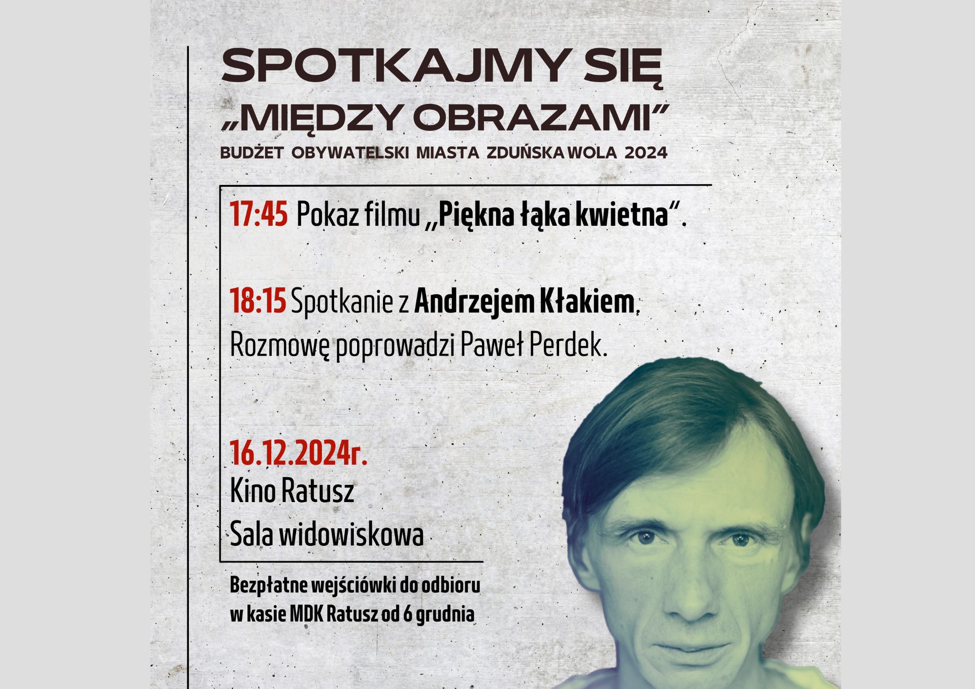 18:15 Spotkanie z Andrzejem Kłakiem. Prowadzenie: Paweł Perdek