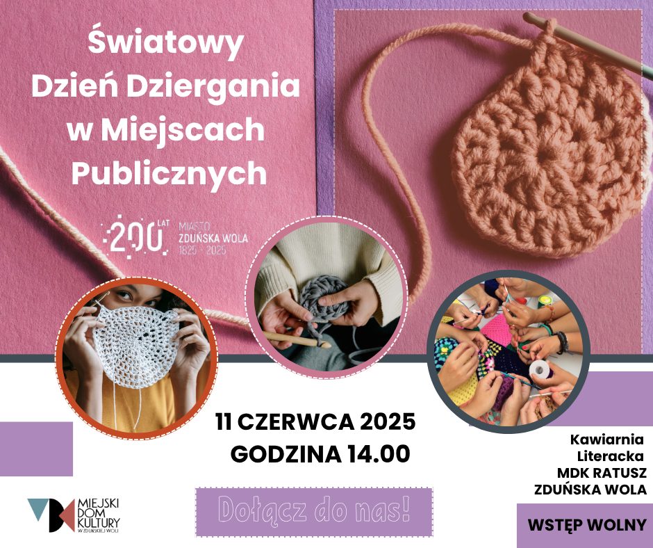 Z okazji Światowego Dnia Dziergania w Miejscach Publicznych spotkamy się 11 czerwca (środa) w Kawiarni Literackiej MDK Ratusz. Początek wspólnego dziergania godzina 14.00.