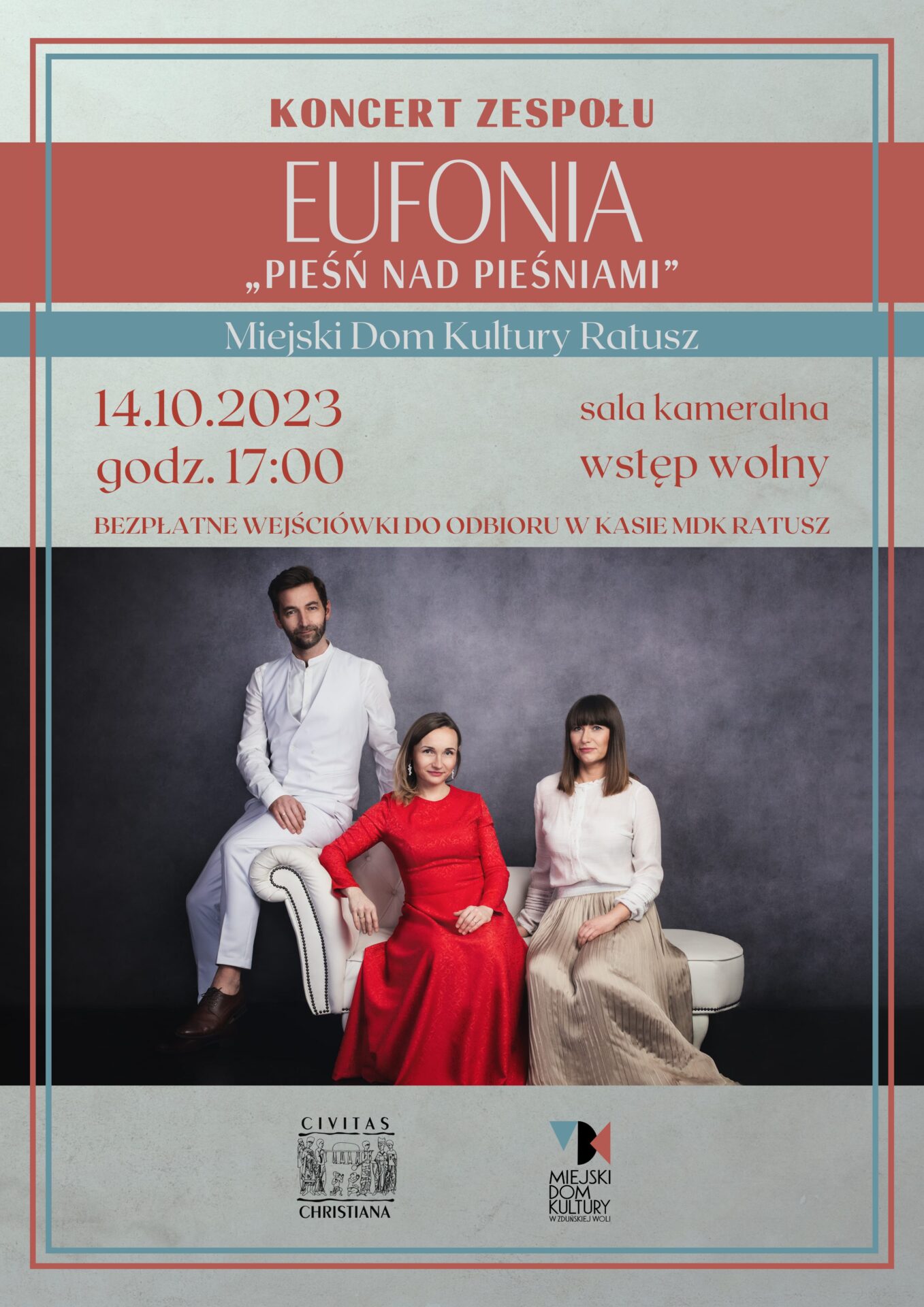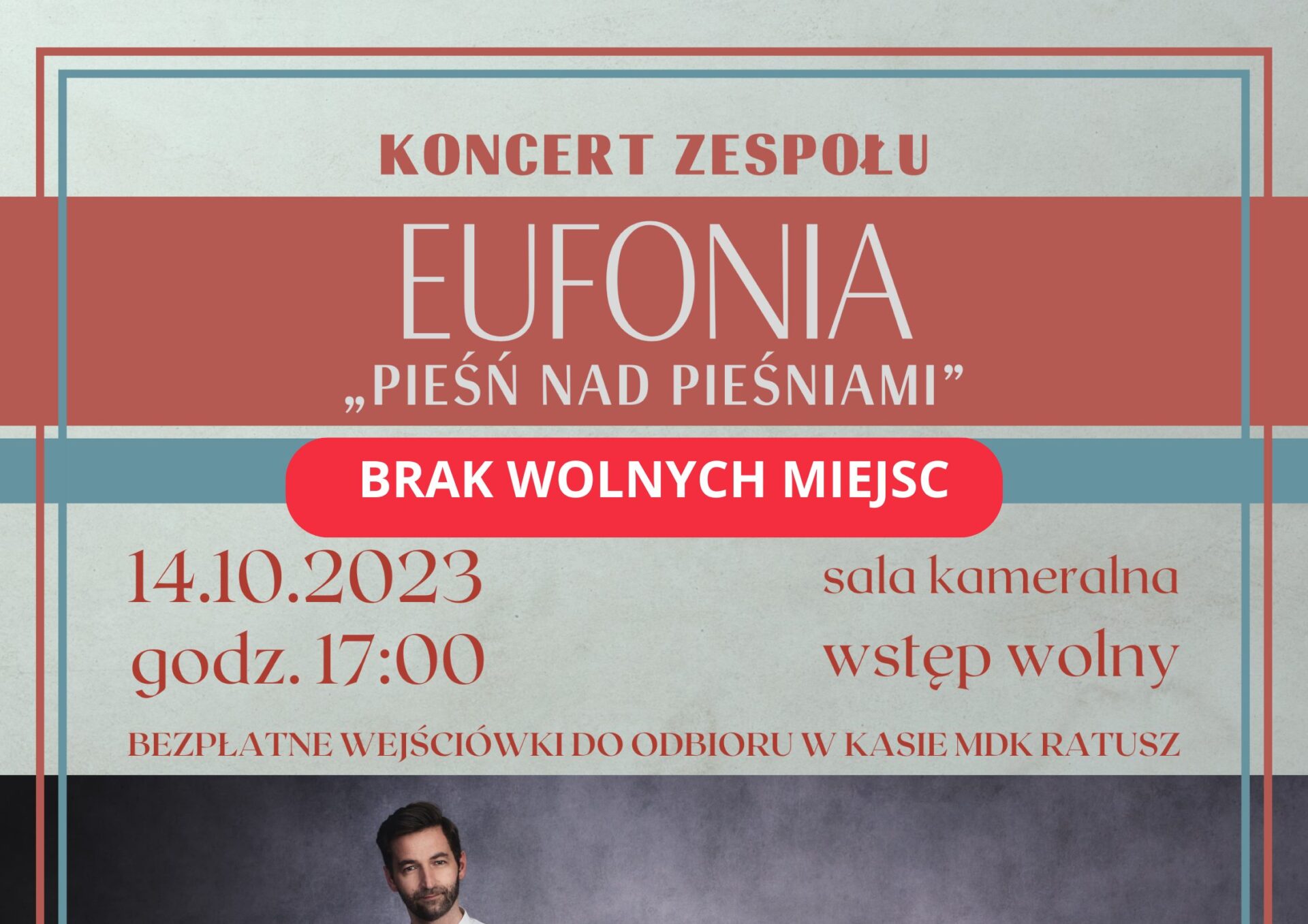 Koncert Zespołu EUFONIA ,,Pieśń nad Pieśniami” odbędzie się 14 października o godz. 17:00 w sali kameralnej MDK Ratusz.
