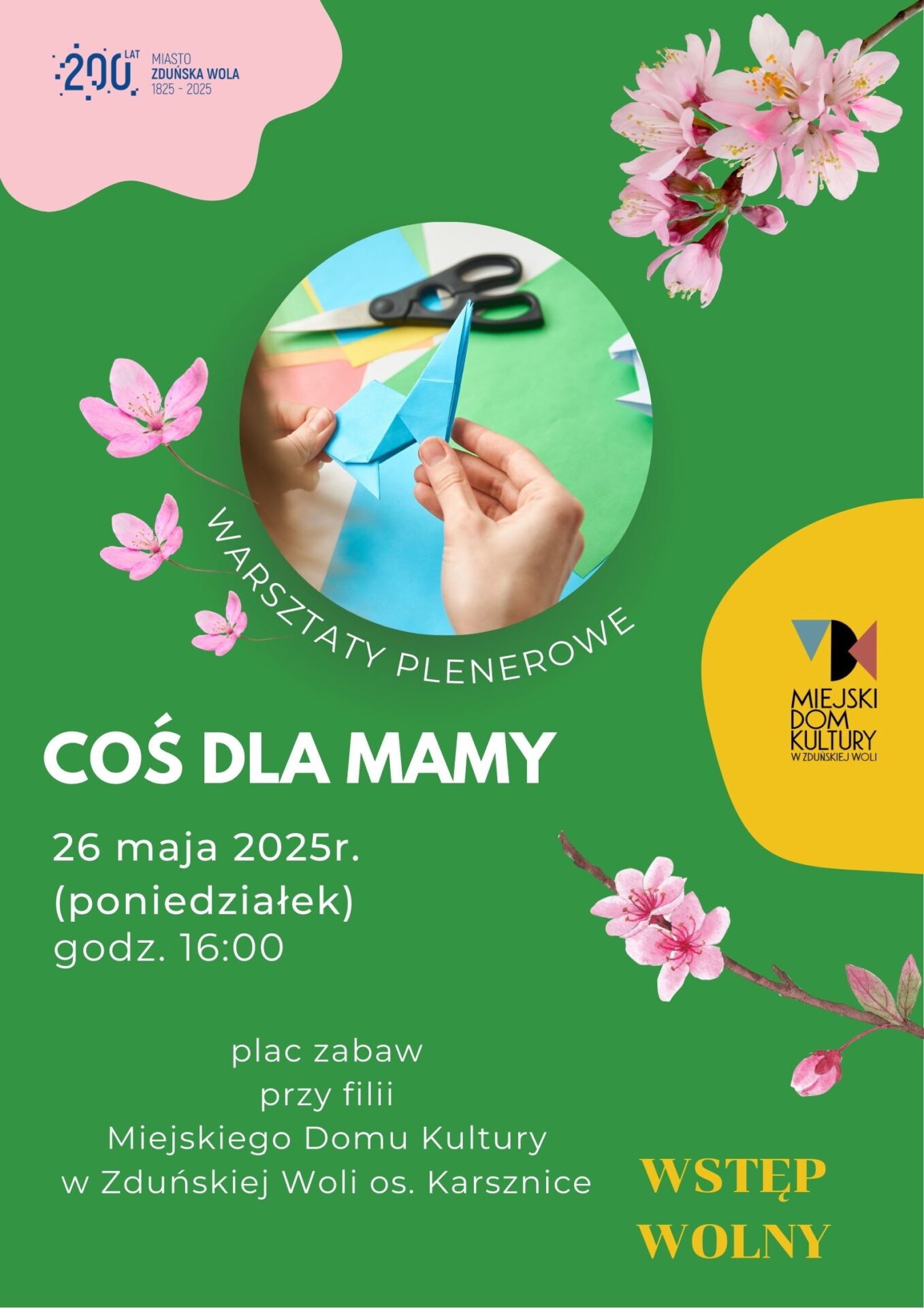 – Wśród zieleni i w radosnej atmosferze, dzieci będą mogły puścić wodze fantazji, korzystając z przygotowanych materiałów: kolorowych kartek, kredek, nożyczek, kleju i innych ozdób. Każdy uczestnik samodzielnie stworzy wyjątkowy upominek: laurkę, ozdobę, kartkę z życzeniami lub inny twórczy projekt prosto z serca. To doskonała okazja, by spędzić czas na świeżym powietrzu, rozwijać wyobraźnię i sprawić radość ukochanej mamie! – mówią animatorki z filii MDK.