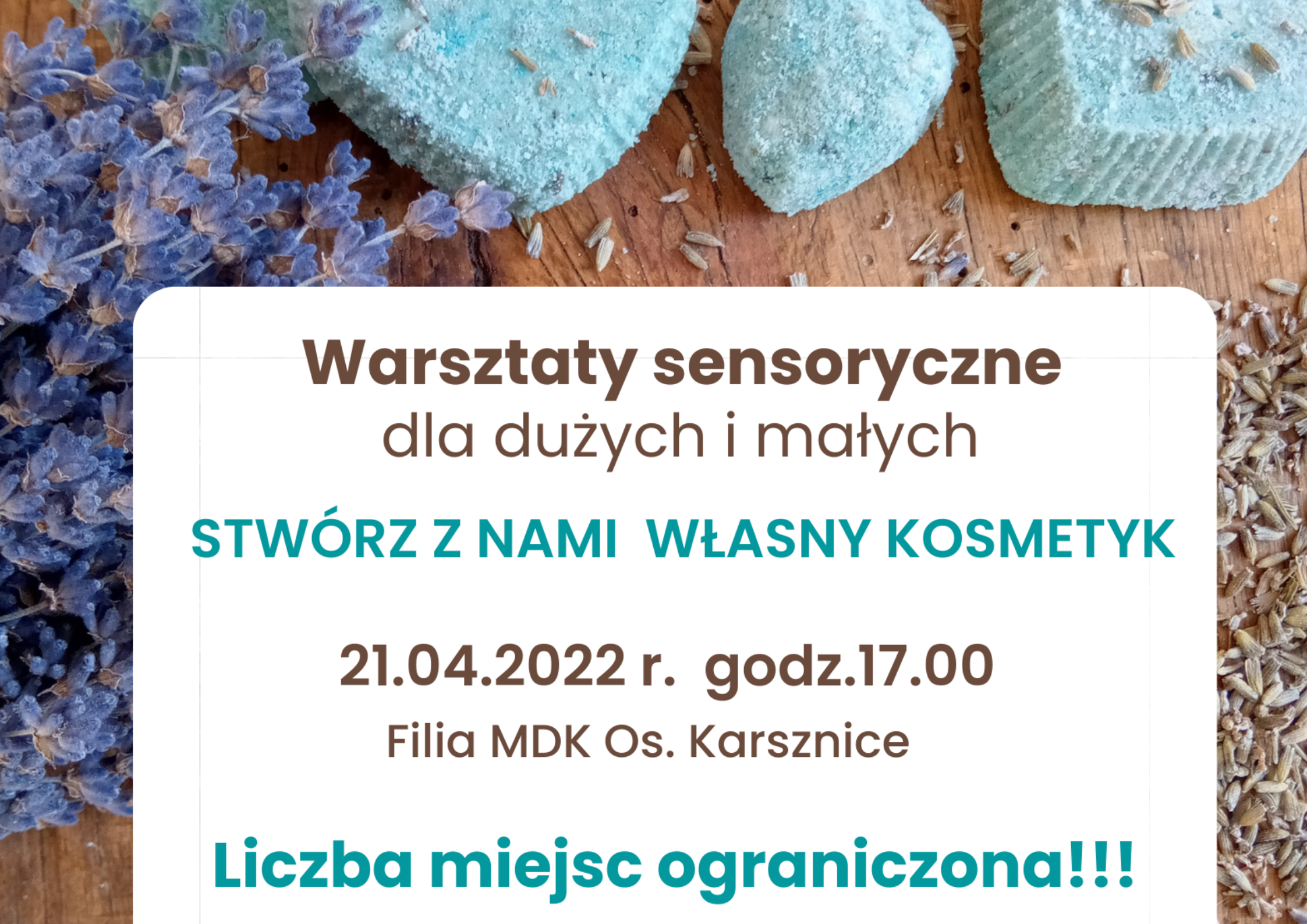 Do dyspozycji uczestników będą wszystkie potrzebne składniki. Formy, zapachy, kwiaty, barwniki i półfabrykaty kosmetyczne.
