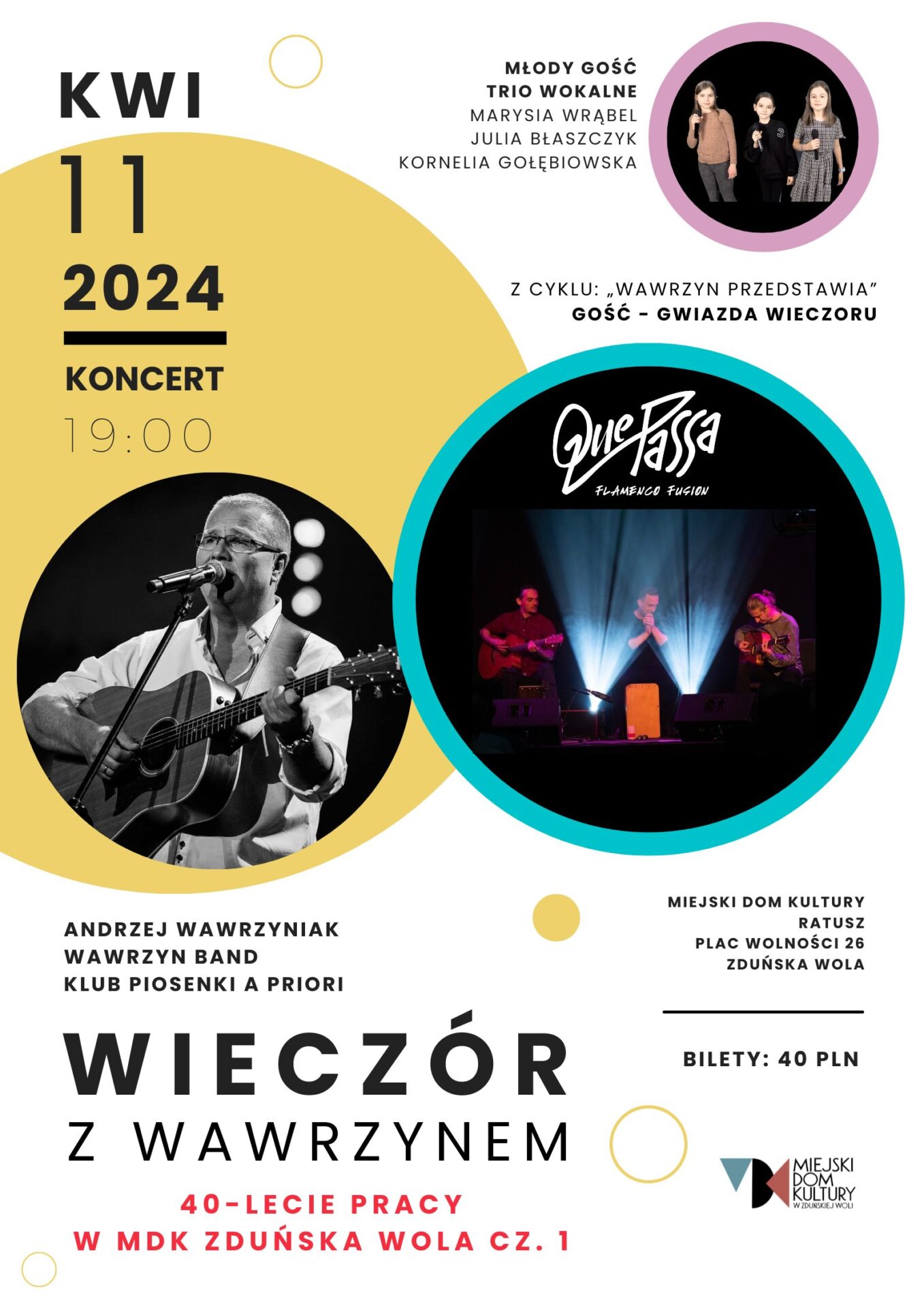 Pierwsza część koncertu ,,Wieczór z Wawrzynem” – 40-lecie pracy Andrzeja Wawrzyniaka w Miejskim Domu Kultury odbędzie się 11 kwietnia.