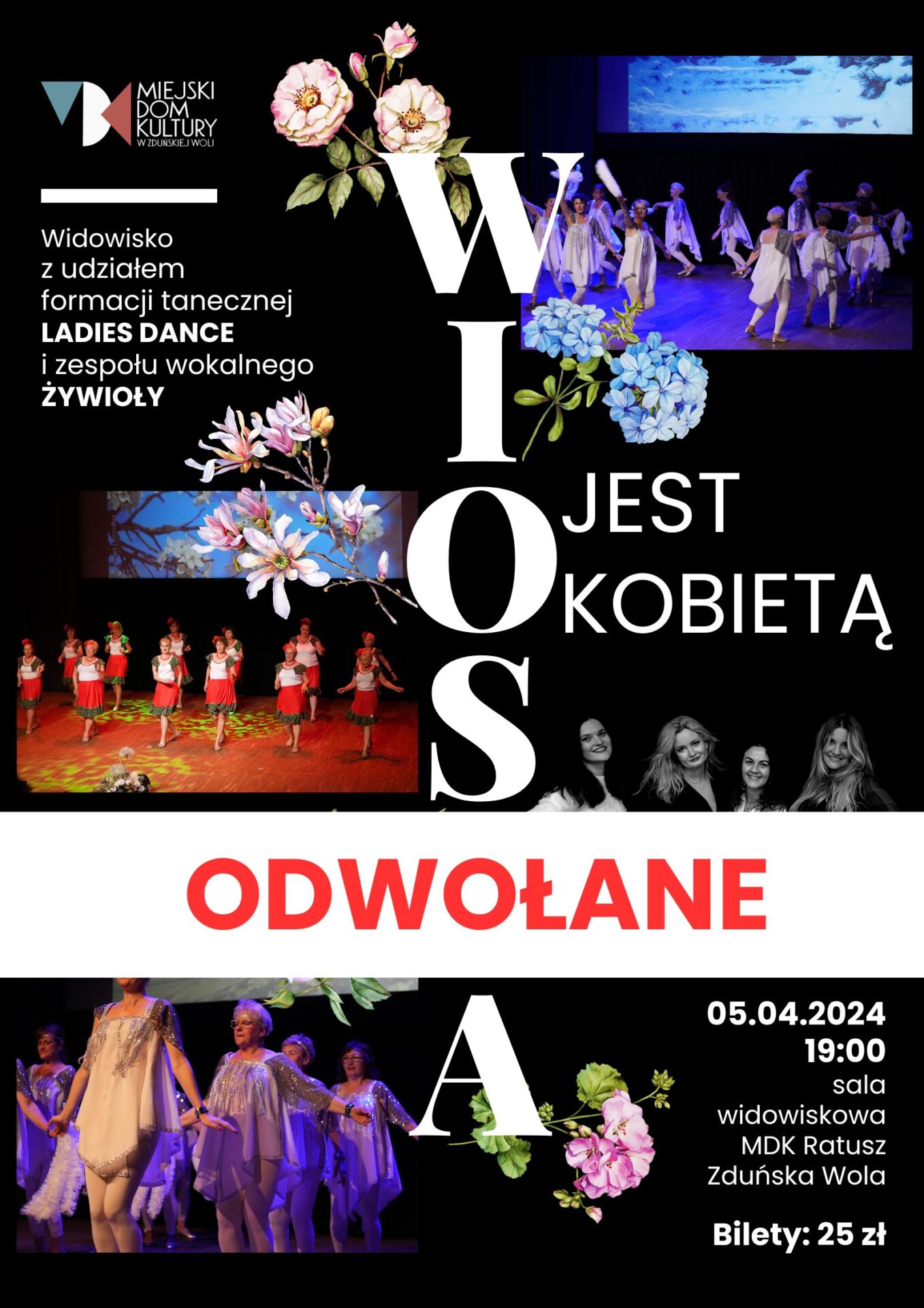Choroby nie odpuszczają. Ze względu na liczne zachorowania artystek występujących w widowisku ,,Wiosna jest kobietą” zmuszeni jesteśmy je odwołać.