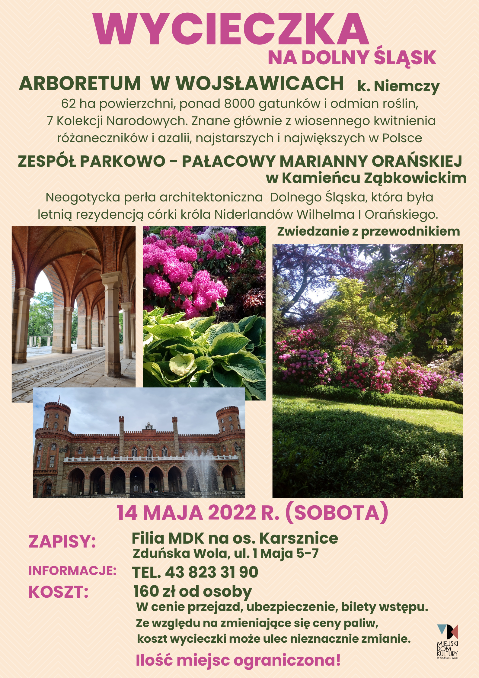 – Naszą wycieczkę rozpoczniemy od zwiedzania z przewodnikiem pałacu Marianny Orańskiej. To prawdziwy klejnot wśród dolnośląskich zamków i pałaców. Pałac otacza piękny park. Marianna Orańska to jedna z najbardziej intrygujących kobiet XIX wieku. Była córką króla Niderlandów Wilhelma I Orańskiego. Jej rodzina została wygnana z Niderlandów przez Napoleona, a na banicji przebywała w Prusach – mówi Wioletta Jagiełło z filii MDK.