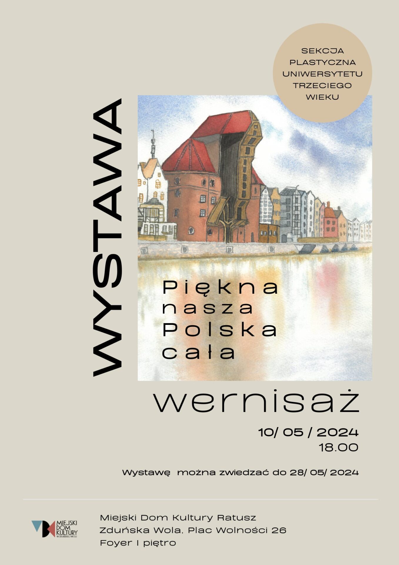 Na wernisaż wystawy prac sekcji plastycznej Uniwersytetu Trzeciego Wieku pt. „Piękna nasza Polska cała” zapraszamy 10 maja o godzinie 18.00, foyer MDK Ratusz na I piętrze.