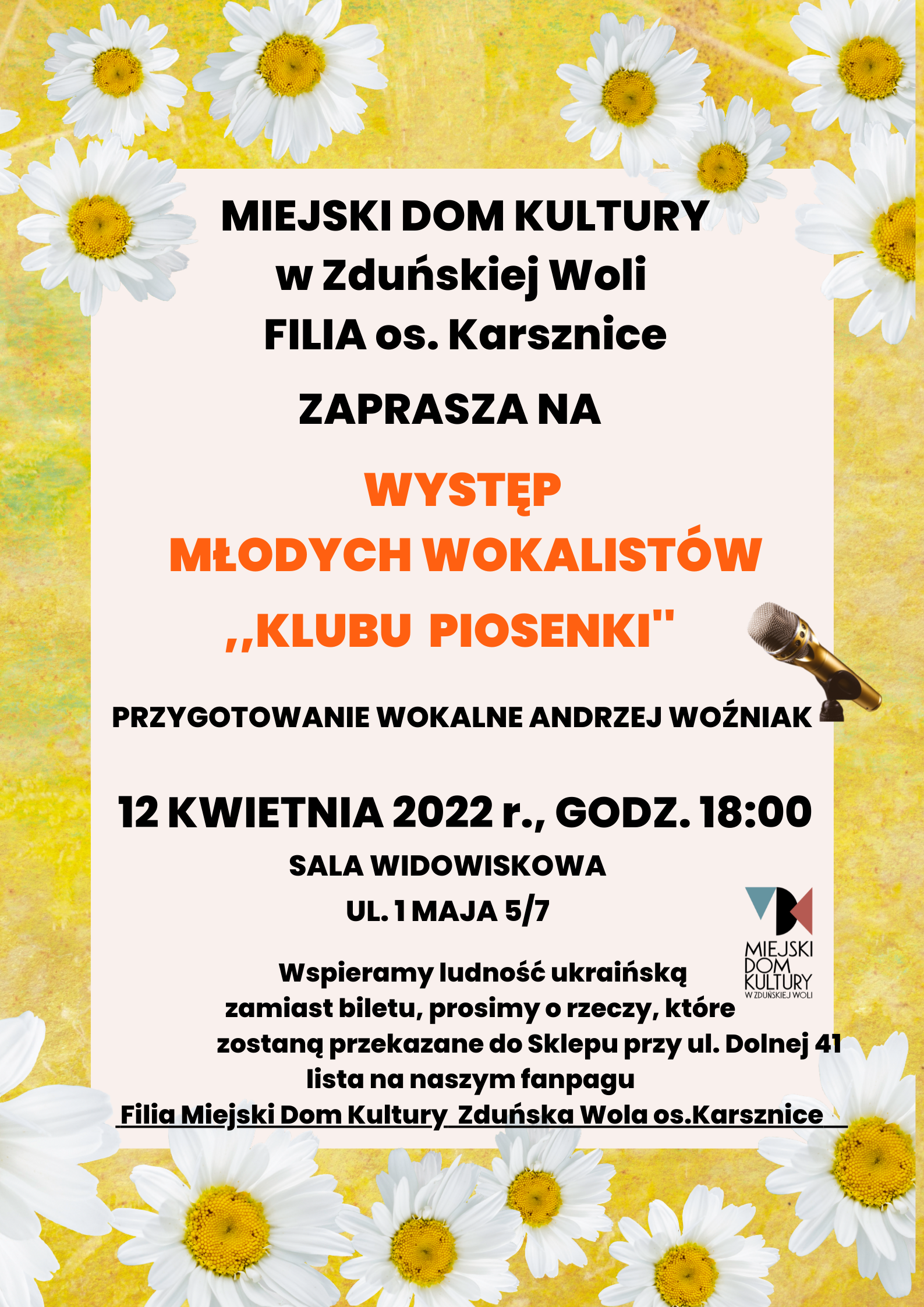 Koncert odbędzie się 12 kwietnia o godzinie 18.00 w sali widowiskowej filii MDK, os . Karsznice, ul. 1 maja 5-7.