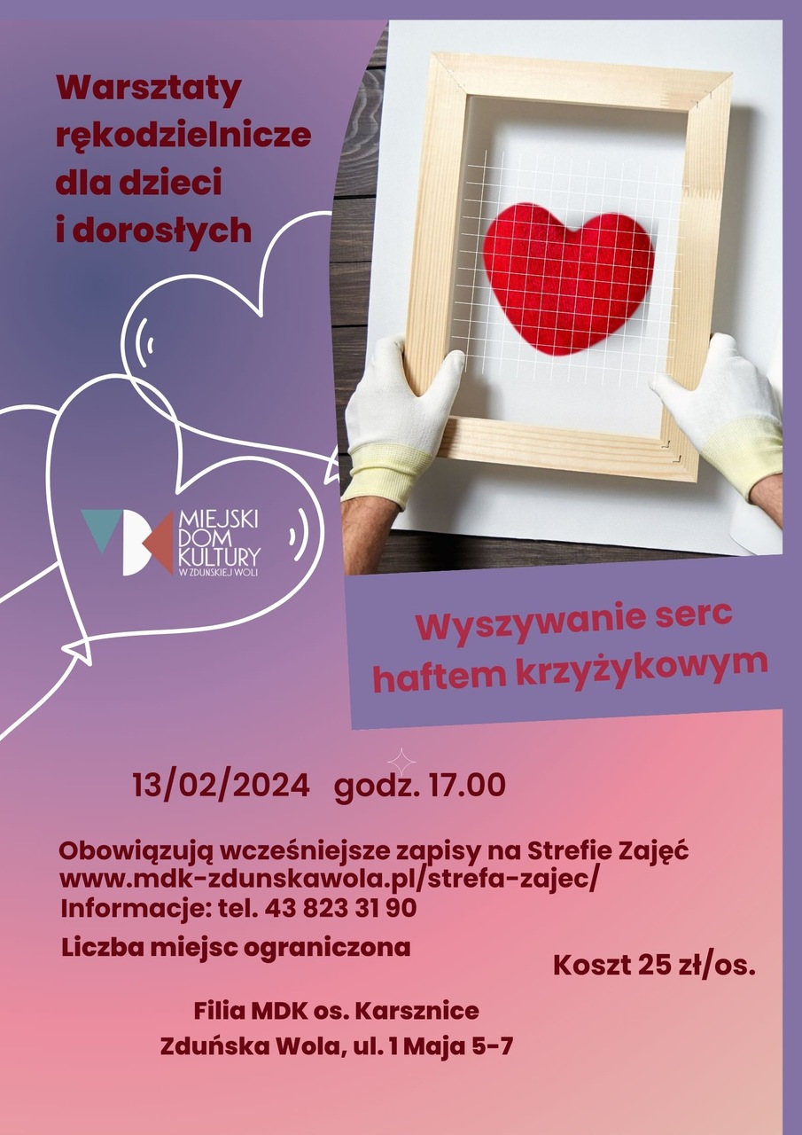 Warsztaty odbędą się 13 lutego 2024 r. o godz. 17.00 w filii Miejskiego Domu Kultury os. Karsznice