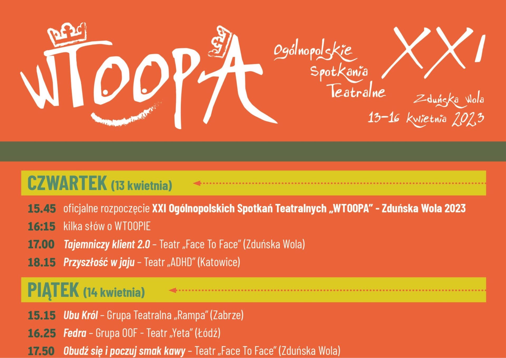 Na XXI WTOOPĘ zapraszamy od 13 do 15 kwietnia (czwartek, piątek, sobota) do sali widowiskowej MDK Ratusz.